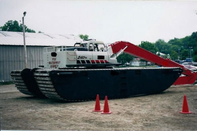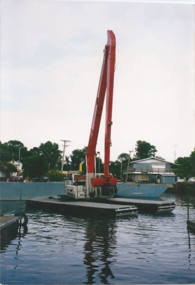 This Link-Belt 240 was built in 2002 in Illinois for the waterway division, and it is still being used today on a daily basis. It has a 60' reach, a 350-gallon fuel tank, and 2' wide walkways.